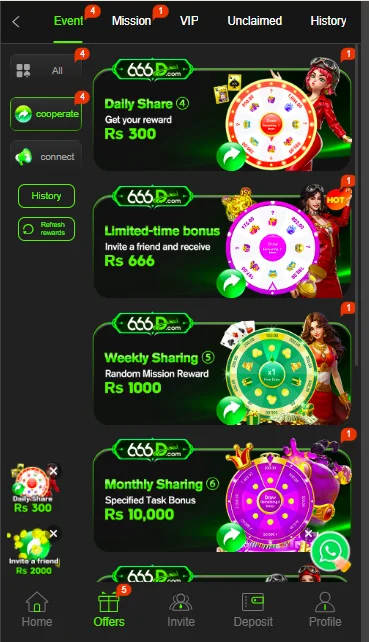 The 666D game ensures that the state Commission is available to all players. This big Commission can only be obtained if users have good gaming skills and strategies to avail such opportunities of earning. Referral money is a huge money in the game, and other bonuses are too.