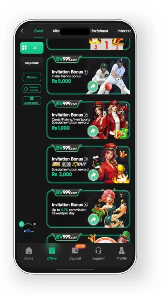 In addition to this, the BV999 game download supports local payment methods such as jJazz Cashand Easy Paisa, along with bank transfers. Therefore, there are multiple ways of earning. It has a huge gaming library where players can find their favorite games and make their earnings even easier. Games ranging from online live casinos to classical slots and modern Teen Patti to roulette are the famous ones on their platform. It offers numerous rewards and promotions, including login reward, SMS verification reward, invitation money,y and so on.