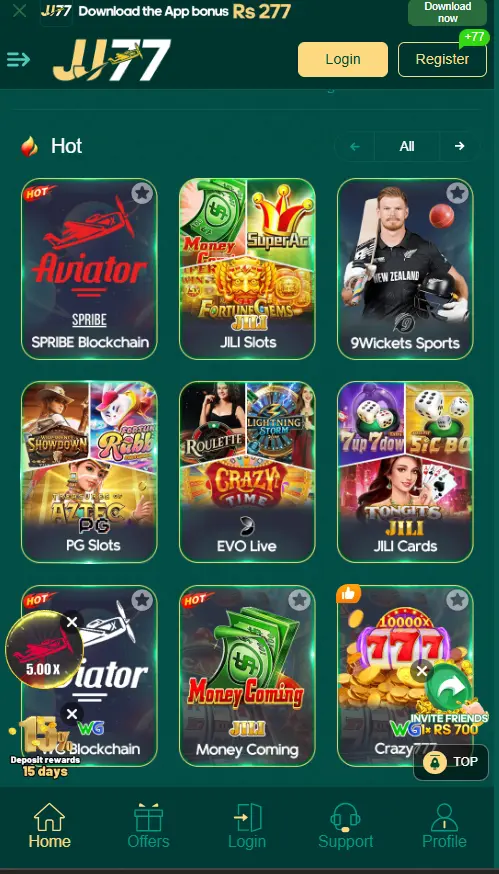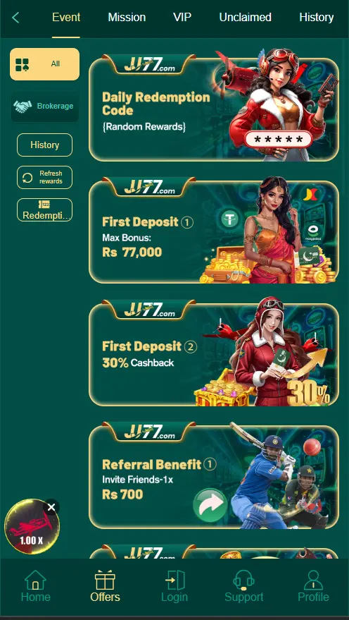 The JJ 77 game is a huge gaming platform that offers numerous types of bonus rewards, ards including referral bonus, login bonus, and registration bonus,s in addition to SMS verification bonus and deposit bonus. Therefore, rewards are never compromised on the platform.