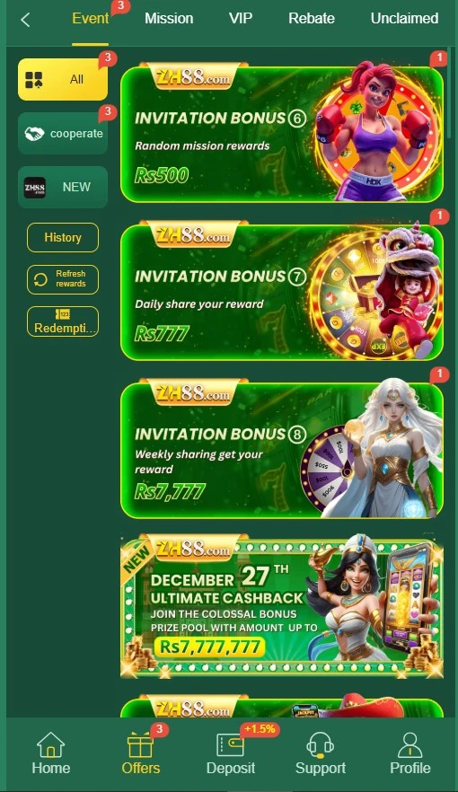The ZH 88 game is very rich in rewards in the sense that it has bonus rewards, referral programs, and other reward features that are offered to all players who download the game. Players are rewarded with these bonuses. Bonus rewards are good to boost earnings.